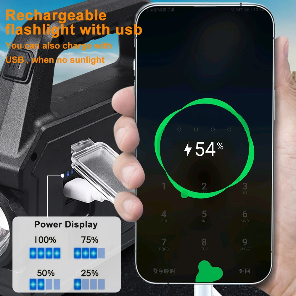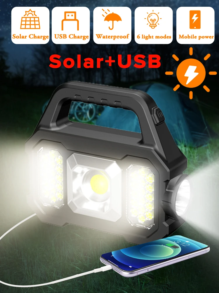 Product Title: LED Searchlight Solar + USB Rechargeable Camping Light Waterproof Outdoor Portable Light