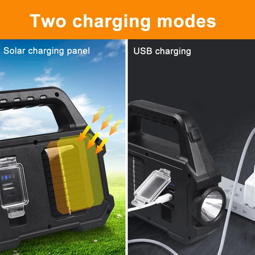 2. Two Charging Methods: Solar + USB charging.