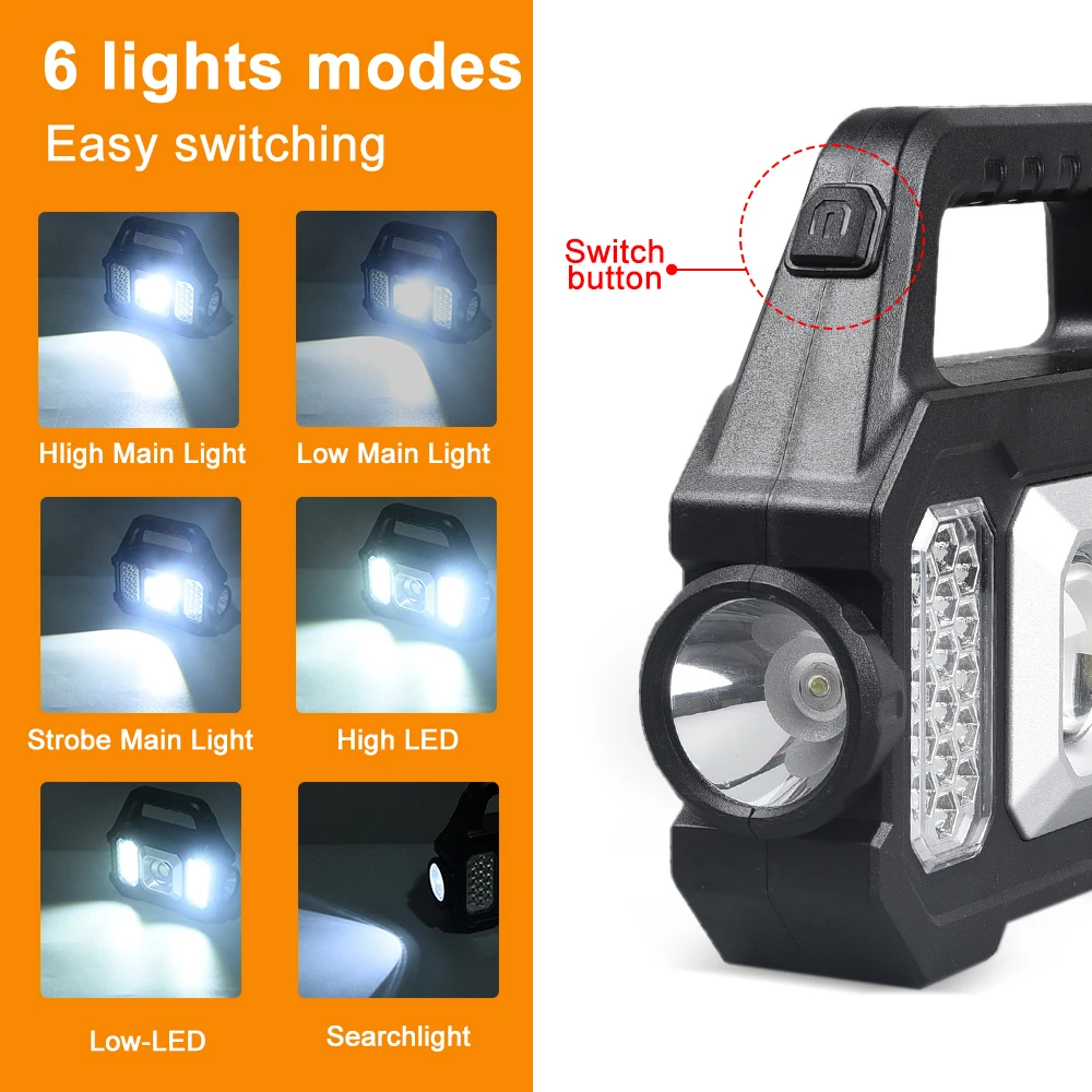 6. High-quality Material: High-strength ABS engineering plastic, fully sealed structure, explosion-proof, prevent splashing water from all angles. Dust-proof, moisture-proof and impact-resistant. 7. 7.Applicable Scene: Ideal for camping, hiking, fishing, sailing, emergency lighting, outdoor, dog walking, rescue,maintenance, stall, vehicle, emergency Indoor and outdoor activities such as running, hiking, hunting, indoor work lights, etc.